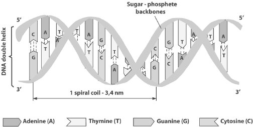 Диаметр двойной спирали ДНК составляет 2 нанометра, расстояние между соседними нуклеотидами – 0,34 нанометра, на один оборот спирали приходится 10 пар нуклеотидов. Длина молекулы может достигать нескольких сантиметров и иметь молекулярный вес, исчисляемый десятками и сотнями миллионов единиц. Суммарная длина ДНК ядра одной клетки человека составляет около 2 метров! Молекулы ДНК – самые крупные из органических молекул.