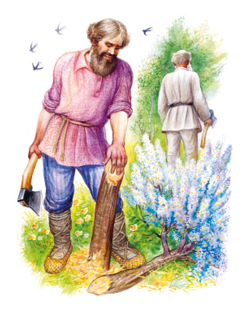 Всякую работу весело работать; весело и рубить. Весело наискось глубоко всадить топор, и потом напрямик подсечь подкошенное, и дальше и дальше врубаться в дерево.