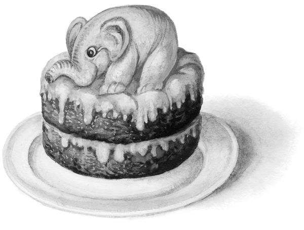 Надин отец бежит в соседнюю булочную и покупает большой круглый фисташковый торт. Слон обнаруживает желание проглотить его целиком вместе с картонной коробкой, но немец даёт ему всего четверть. Торт приходится по вкусу Томми, и он протягивает хобот за вторым ломтём. Однако немец оказывается хитрее. Держа в руке лакомство, он подымается вверх со ступеньки на ступеньку, и слон с вытянутым хоботом, с растопыренными ушами поневоле следует за ним. На площадке Томми получает второй кусок.