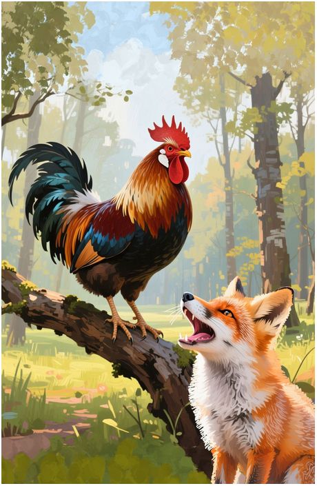 – И я тоже! – говорит лиса. – Где коршун ли, ястреб ли курочку словят, а всё я, лиса, виновата. Побежим-ка вместе!