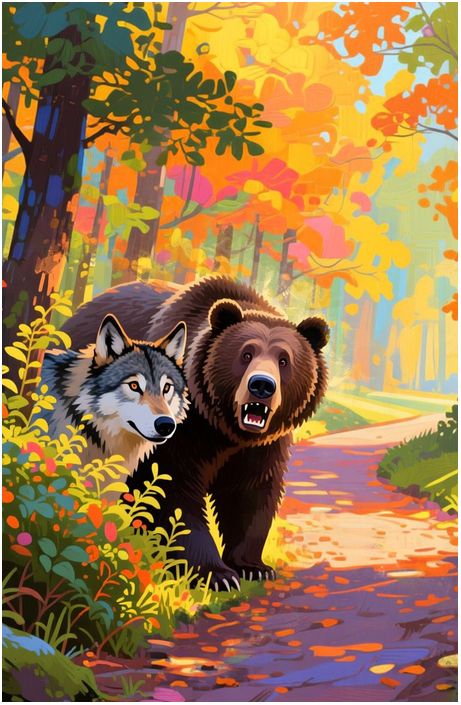 Волк и медведь убегают