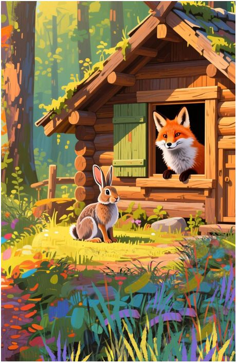 Заяц побежал во всю прыть. Подбегает к лисиной избушке и стучит в окошко: