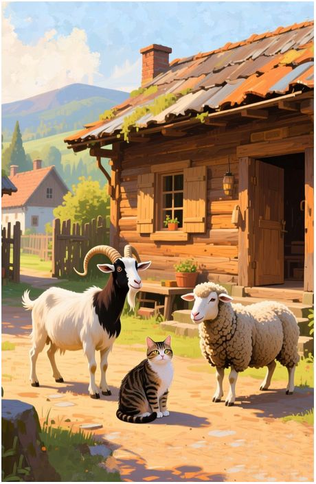 Жили-были на одном дворе кот, козёл да баран. Жили они дружно: сена клок и тот пополам; а коли вилы в бок, так одному коту Ваське. Он такой вор и разбойник: где что плохо лежит, туда и глядит. Вот идёт раз котишко-мурлышко, серый лобишко; идёт да таково жалостно плачет. Спрашивают кота козёл да баран: