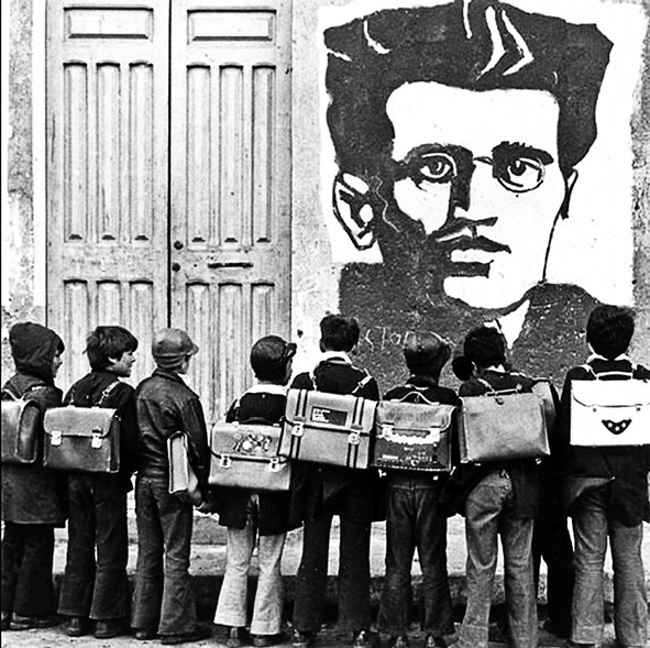 Портрет Антонио Грамши на стене итальянской школы.