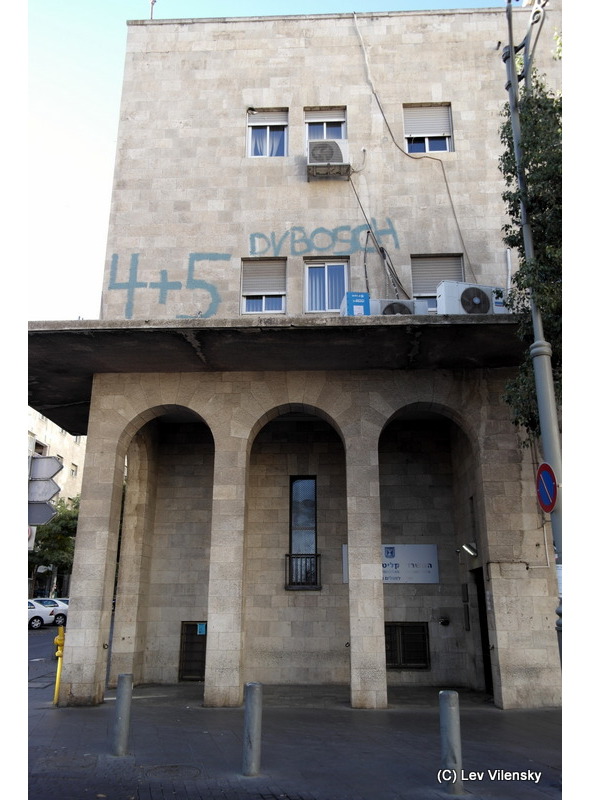 Да-да, посреди газона, ясно видимая со стороны улицы Кинг-Джордж возвышалась с 1956 года та самая бронзовая Менора, символ еврейского народа и молодого государства Израиль, которую позже перенесли к новому зданию Кнессета – в Гиват Раме. А совсем рядом – слева от Меноры – находилось первое здание Кнессет Исраэль, израильского парламента, известное как Бейт-Фрумин, дом Фрумина.