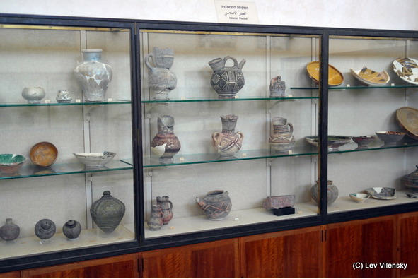 Невозможно не задержаться возле некоторых из экспонатов. Вот, например, налево от входа зал с печатями – начиная от первых шумерских печатей, которым 5 тыс. лет, переходя к ранним вавилонским; подобными печатями пользовался и праотец наш Авраам, это цилиндры из твердого камня, которые прокатывали по мягкой глине тогдашних клинописных документов. Есть здесь и израильско-иудейские печати IX – VI вв. до н.э, так называемые «царские» печати, которыми помечали горлышки кувшинов. Или – коллекция мечей, боевых топоров, шлемов и доспехов – от древнеассирийских до хананейских и иудейских. А вот саркофаг с египетской мумией, вот посуда и музыкальные инструменты из Египта времен Иосифа и его братьев. Таблички с клинописью, папирусы с иероглифами, и – венец развития письма, алфавит, финикийские надписи и иудейские остраконы VIII – VI веков до н.э.