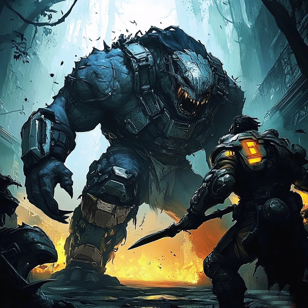 Вожак нурглов, поняв, что его цель не ударится в панику, сам потерял терпение и бросился на меня. Рванув ему навстречу, поднырнул под правую лапу этой образины и прыгнул со всей возможной силой к его голове. Удар левой лапой я даже не смог рассмотреть, настолько он был быстрым. Похоже, у моего копья были неплохие шансы попасть в глаз твари. Раз его это так взбесило. Эта мысль пролетела в моей голове за мгновение до того, как тело в экзокостюме разломило немаленький ствол дерева, росший на траектории моего полёта. Мои крепкие кости в этот раз сыграли со мной злую шутку. Мясо и органы уже превратились в фарш, но внешние скорлупки были целы, и только кровь, что вытекала изо всех щелей, портила впечатление. Гигант поднимает меня и с неподдельным интересом подносит поближе к глазам, не понимая, почему добыча всё ещё цела. Я изворачиваюсь уже на грани потери сознания и бью ядовитым жалом в глаз огромному Вожаку нурглов. Удар выходит просто филигранным, костяное острие входит на всю глубину. Вожак ревёт, хватает второй лапой моё тело и просто сминает его с дикой яростью. Вспышка невыносимой боли, и мир перед моими глазами потух.