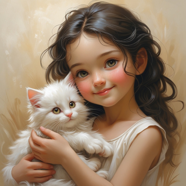 Так у Сони появился самый настоящий друг – белый пушистый котенок, которому она дала имя Пушистик. Пушистик стал настоящим другом Сони. Они вместе играли во дворе, гуляли, Соня делала для него бантики на ниточках, и он весело гонялся за ними. Соня, как и обещала, заботилась о нем – кормила, поила, иногда купала, причесывала его шерстку. И каждую ночь Пушистик уютно спал рядом с Соней, согревая своим теплом.