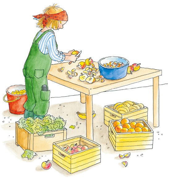 – Пойдём, я покажу тебе, кто у нас живёт! – говорит Анника и ведёт Конни по двору.