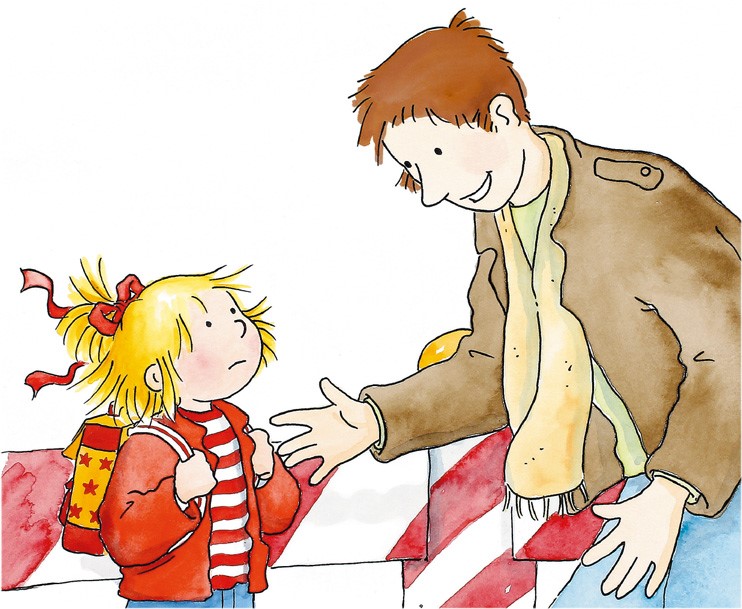 Его голос звучит так приветливо, а Конни так растеряна, что чуть не говорит свой адрес: «Кленовая улица, 14». Но тут же вспоминает мамины слова: «Нельзя разговаривать с незнакомыми!» Конни задумывается: она ведь действительно не знает этого человека.
