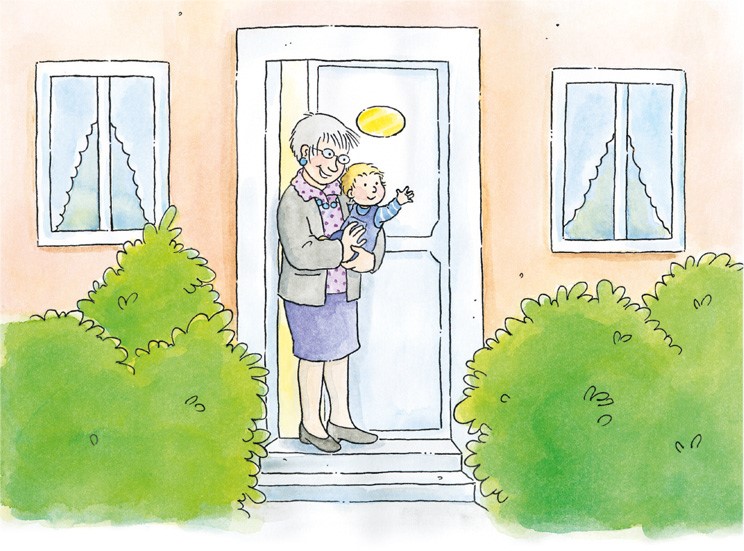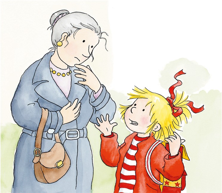 Бабушка дарит Конни маленькую сумочку и два евро, ведь Конни уже большая девочка.