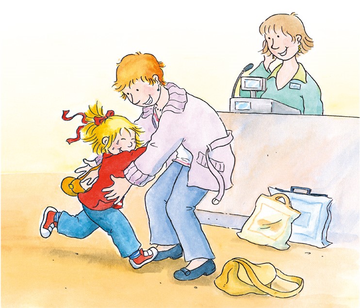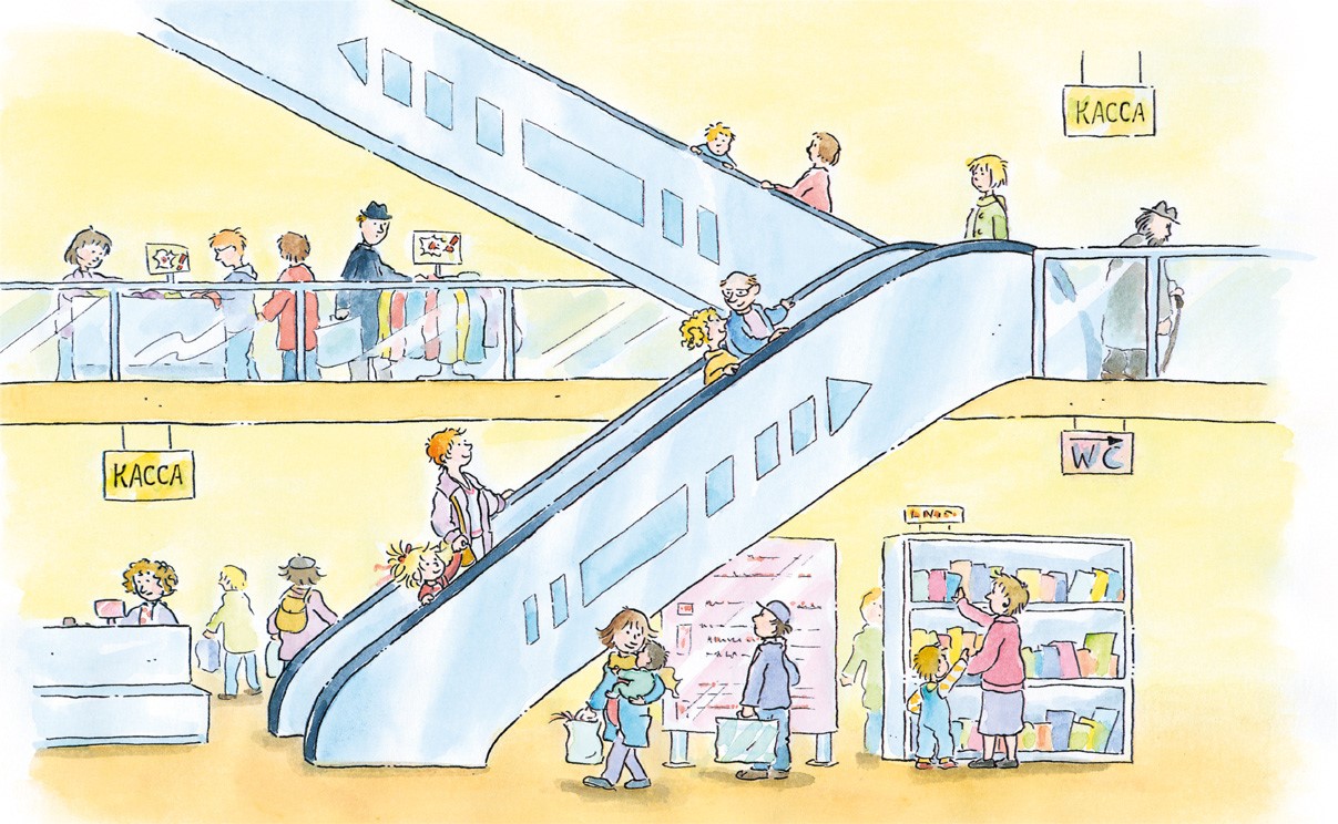 Конни точно помнит, где здесь эскалатор. Со всех ног она бежит туда. Вот и касса! А рядом с ней стоит мама!