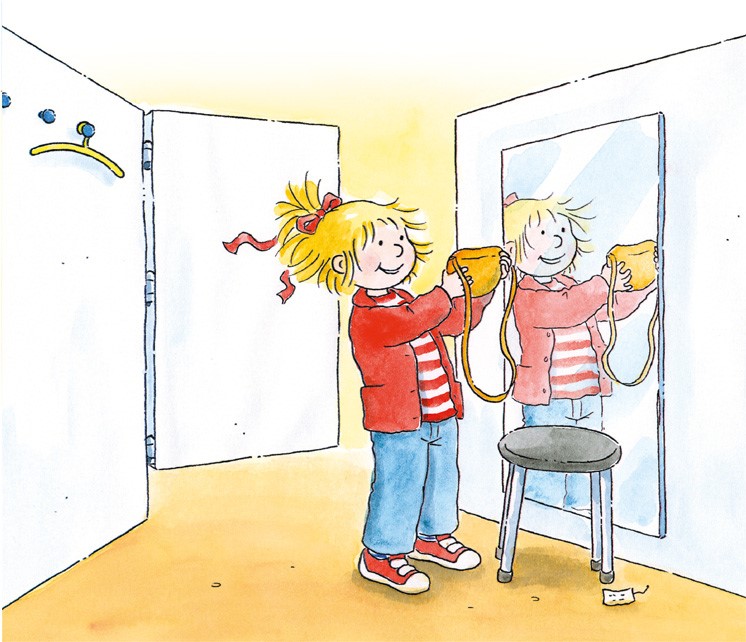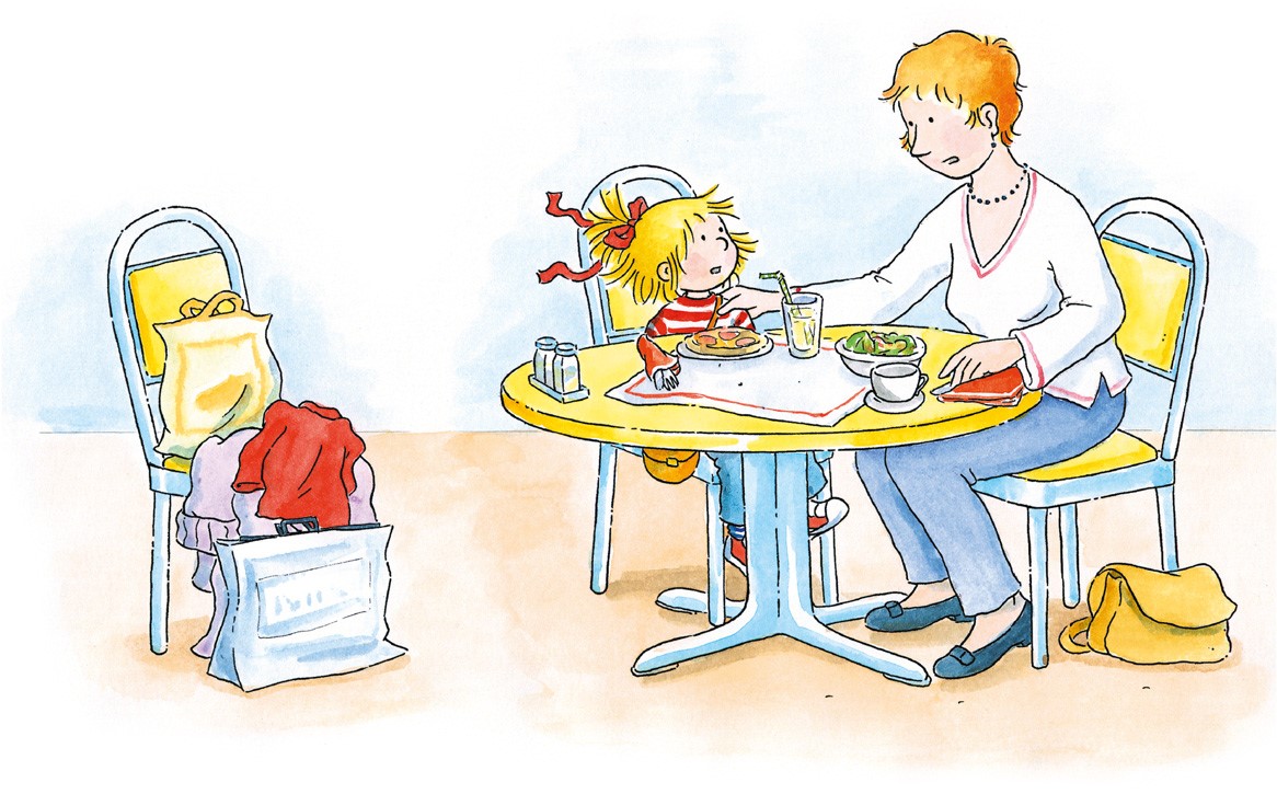 – Вот она! Ура! И деньги на месте. – Конни с облегчением вздыхает. Она берёт сумочку и возвращается к маме. Ой, где же она?