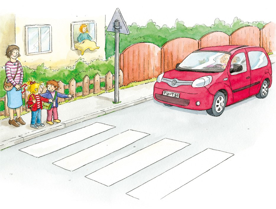 – Знаете, почему пешеходный переход называется «зебра»? – спрашивает мама Юлии у девочек. – Потому что его разметка похожа на чёрно-белую шкуру зебры. По этим полоскам переходить улицу безопасно.
