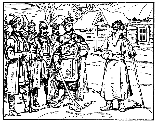 – Ишь, притворяется старая лисица. Неведомо тебе, что ли, что твой боярин, Михайла Романов, в цари всею Русью избран? И ловок же ты лукавить, старик, – злобно расхохотался начальник отряда.