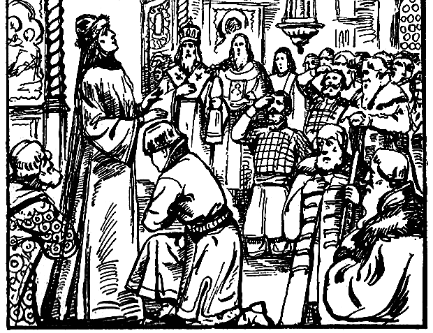 Шли инокини не спокойно, как всегда в обычное время, а с тревожными, хотя и тихими переговорами. Чудное происшествие случилось в монастыре. Еще с вечера перед вечерней, в обитель приехали гонцы из города и оповестили старицу Марфу о том, что наутро к ней собирается великое посольство. Потрясенная и взволнованная, старица наказала явиться посольству в этот день перед обедней. А зачем и для какой цели должно было явиться посольство, никто и не знал в монастыре.