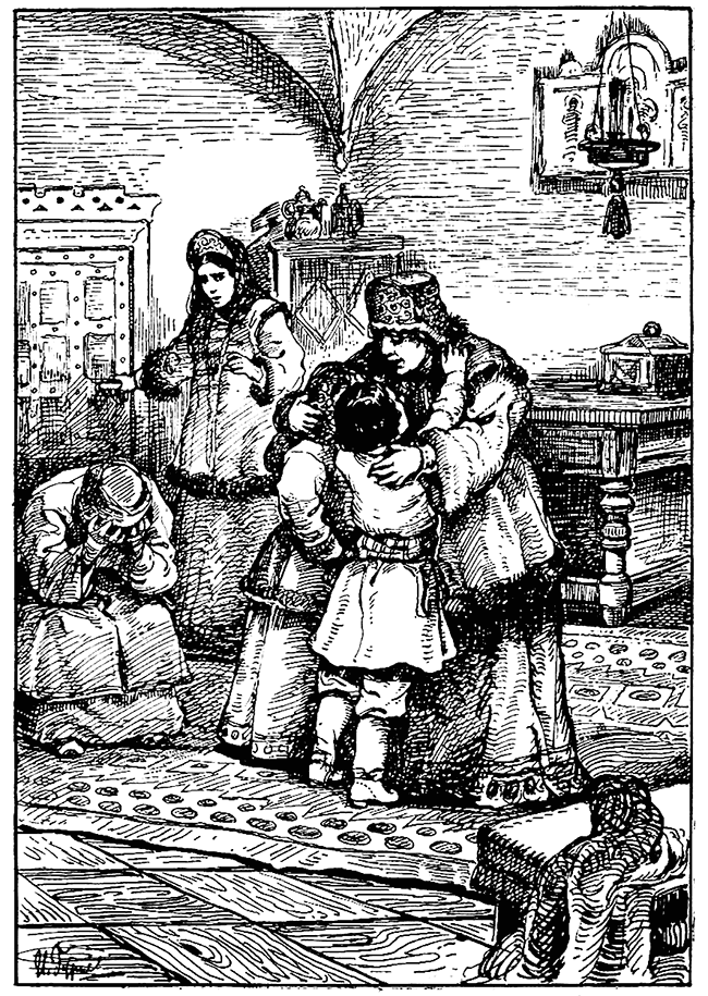 И долго бы еще лилась неудержимым потоком речь предателя, если бы молодой богатырь Михаил Никитич не рванулся вперед и со сжатыми кулаками не бросился на доносчика.