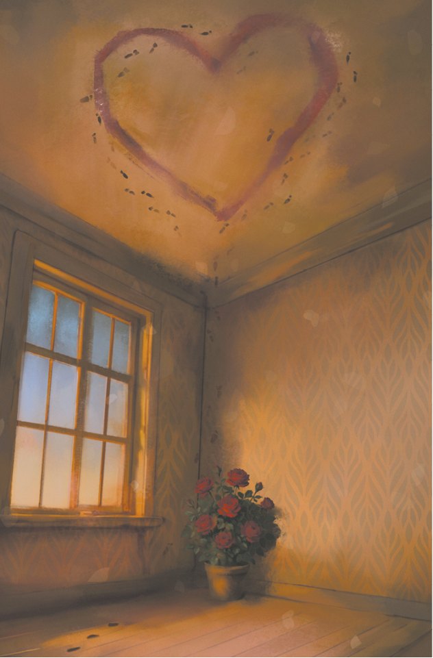 Я внимательно пригляделась к рисунку и увидела следы маленьких ног, уходивших от сердца в сторону. Кто‐то очень мелкий забрался ко мне в комнату и перевел все варенье на рисунок. Скорее всего, и букет – его выходка.
