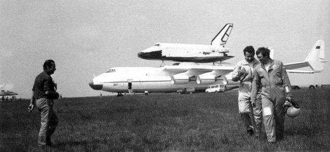 Для пилотирования БТС и проведения других летных испытаний подобрали группу опытных космонавтов-испытателей из 11 человек. Руководил группой Герой Советского Союза заслуженный летчик-испытатель Игорь Петрович Волк. Первые полеты на Большом транспортном самолете провели летчики-испытатели Игорь Волк и Римантас Станкявичюс.