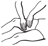 Для того чтобы выполнить разминание, надо обхватить ладонью массируемую область поперек мышцы и, продвигаясь вверх, с нажимом делать вращательные движения четырьмя пальцами, одновременно со сдавливающими движениями большим пальцем, затем наоборот, вращательные движения большим пальцем с одновременными надавливающими движениями четырьмя остальными пальцами. Все движения надо делать плавно и ритмично, без рывков, так, чтобы не причинить боли. Затем делается то же самое, только добавляется еще одно движение: мы захватываем мышцу, чтобы как бы приподнять ее и слегка оттянуть.