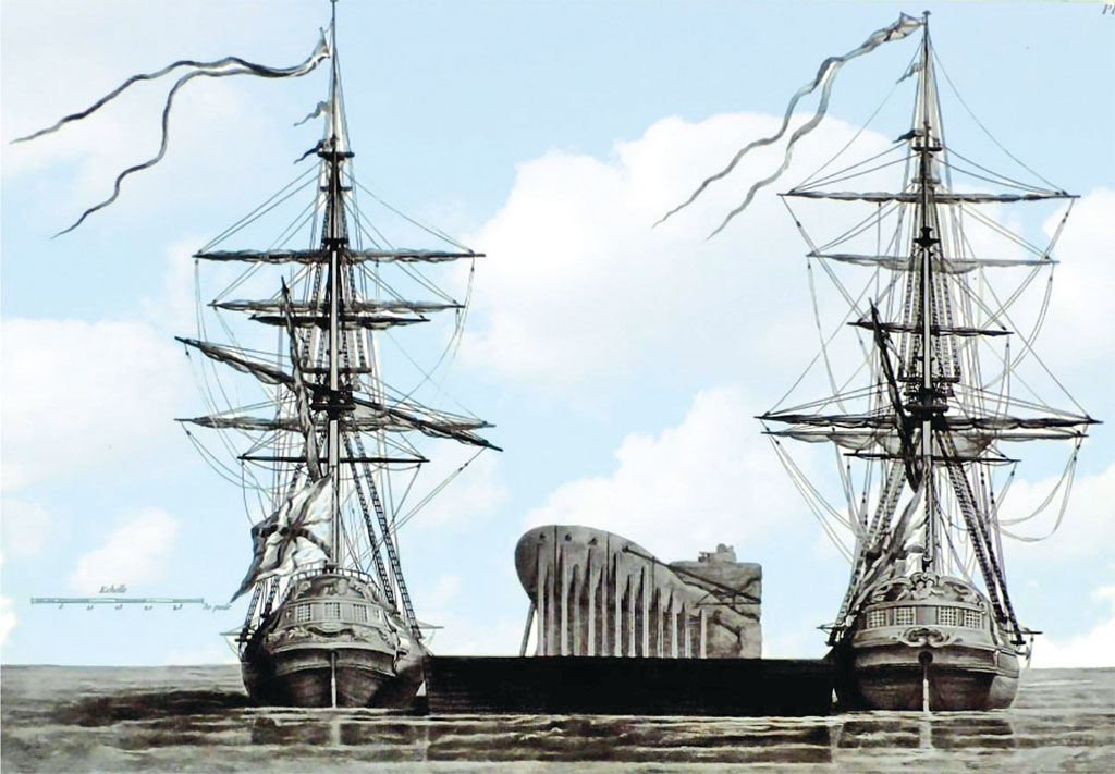 Задача переправки Гром-камня на место установки памятника была не из легких. Фальконе сразу заявил, что размеры валуна слишком велики для постамента к памятнику, но все же камень решили переправлять в его первоначальном виде и размере, немного обтесав его на месте и в процессе транспортировки. Для доставки валуна был сооружен специальный механизм на бревнах и железных катках с применением железных ядер – они и помогали передвигать огромную глыбу. После того как камень доставили к берегу Финского залива, он продолжил свой путь к месту установки памятника по воде на особой плавучей платформе.