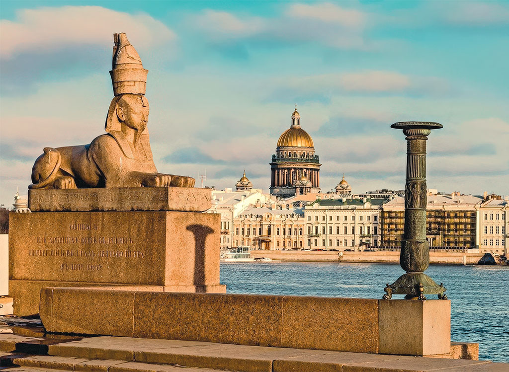 Спустя тысячелетия, в другой части мира и в ином историческом периоде, в городе чуждой культуры образ сфинкса получил свое продолжение как символ чего-то вечного, хранящего истинную суть таинственности и побеждающего время. Скульптуры сфинксов, которые мы можем видеть сейчас в Петербурге на Университетской набережной Невы, были созданы более 3000 лет назад в древней столице Египта Фивах во время правления фараона Аменхотепа III, лицо которого и было навечно запечатлено древними скульпторами при создании этих фигур.