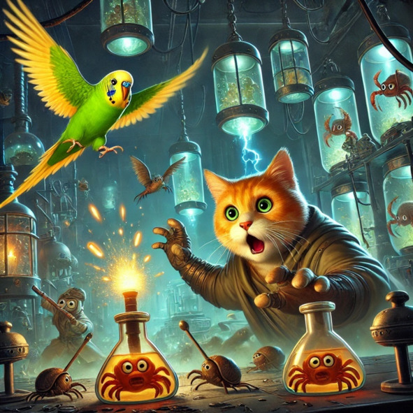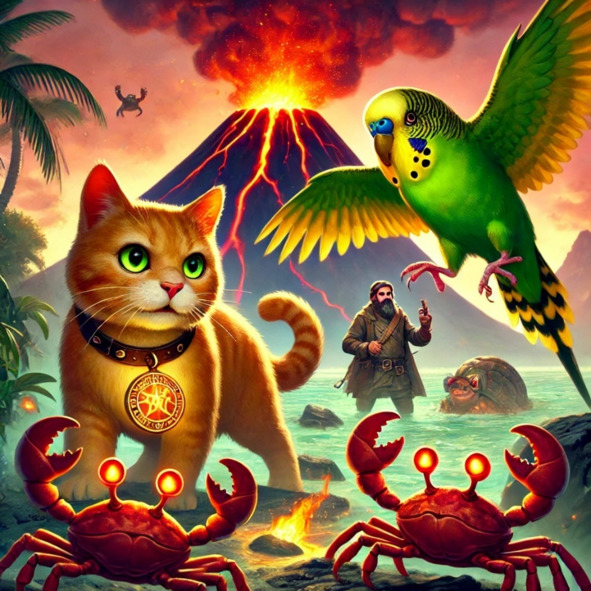 Кот решил взять этот амулет. Пока он доставал его, появилась тысяча крабов. Кот не знал, как использовать находку, чтобы чудесным образом оказаться в своём уютном домике. Крутил-вертел амулет, но ничего не сработало. Максу пришлось сражаться. Через 15 минут Макс подумал: еще одна минута – и остров взорвется. Но они телепортировались – амулет сработал! Каждый оказался в своём доме, только Рико попал к Максу. Вскоре они стали жить вместе. И каждый день думали: когда-нибудь мы станем супергероями!