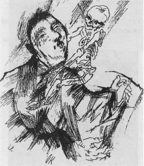 Альберт Эренштейн [Albert Ehrenstein) (родился в Вене 23 декабря 1886, умер в Нью-Йорке 8 апреля 1950) – австрийский писатель. Изучал историю, филологию и философию. В 1911 году переехал в Берлин и вошел в круг немецких литераторов, печатавшихся в экспрессионистских журналах “Штурм ” и “Акцион ”. Много путешествовал по Европе, Африке и Китаю. В 1932 году эмигрировал в Швейцарию, затем в 1941-м – в Нью-Йорк, где жил в бедности. Автор стихотворений (сборники “Белое время” [“Die weifie Zeit”, 1914); “Человек кричит” [“Der Mensch schreit”, 1916]; “Красное время” [“Die rote Zeit,” 1917]; “Письма к Богу” [“Briefe an Gott”, 1922)), фантастически-гротескныхрассказов (сборники “Самоубийство кота” [“Der Selbstmord eines Katers”, 1912); “Ни здесь, ни там” [“Nicht da nicht dort”, 1916); “Рыцарь смерти” [“Ritter des Todes”, 1926)) и культурно-критических эссе. Переводил китайскую поэзию. Переработал и издал легенды Африки. Его самое известное произведение – рассказ “Тубуч” [“Tubutsch”], опубликованный в 1911 году отдельным изданием с иллюстрациями Оскара Кокошки (одна из которых воспроизведена на этой странице). Карл Краус в рецензии на эту книгу (“Факел”, 1912, № 343) писал:
