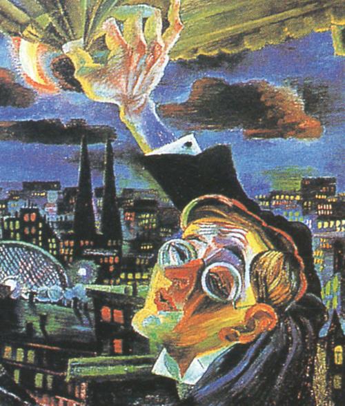 Вальтер Райнер [Walter Rheiner] (1893–1923), настоящее имя Вальтер Хайнрих Шнорренберг. Изучал торговое дело в университетах Кёльна и Люттиха. Периодически жил в Париже и Лондоне. В 1914 году пристрастился к наркотикам, пытаясь симулировать наркозависимость и избежать призыва. Воевал на русском фронте. После войны жил преимущественно в Берлине и Дрездене, где стал членом Экспрессионистского рабочего союза. В Дрездене, между 1918 и 1921 годами, он публикует семь книг: новеллу “Кокаин” [“Kokain”, 1918], поэтические сборники “Звучащее сердце” [“Das tonendeHerz”, 1918], “Остров блаженных” [“Insel der Seligen”, 1918] и др., сборник стихотворений, эссе и прозаических фрагментов “Пестрый день” [“Der bunte Tag”, 1919]. В последние годы не мог писать из-за зависимости от наркотиков. Покончил жизнь самоубийством, выбросившись из окна. Его друг, художник-экспрессионист Конрад Феликсмюллер (1893–1933), прежде проиллюстрировавший книжное издание “Кокаина”, написал картину “Смерть поэта Вальтера Райнера” (1923), фрагмент которой вы видите на этой странице.