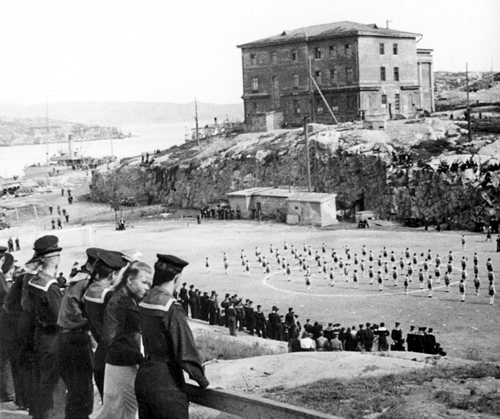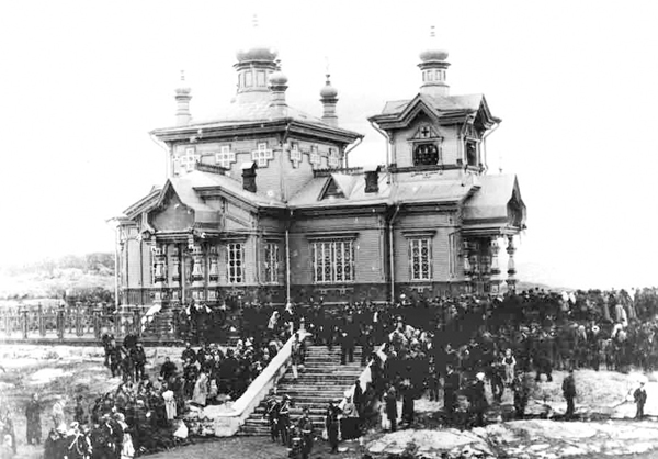 Церковь Святителя Николая в Старом Полярном до революции. Впоследствии в ней помещалось управление тыла флота. К тому времени купола и колокольню снесли. Оба входа тоже упростили, они стали безо всяких архитектурных излишеств – крыши над входом и поддерживающих её резных колонн