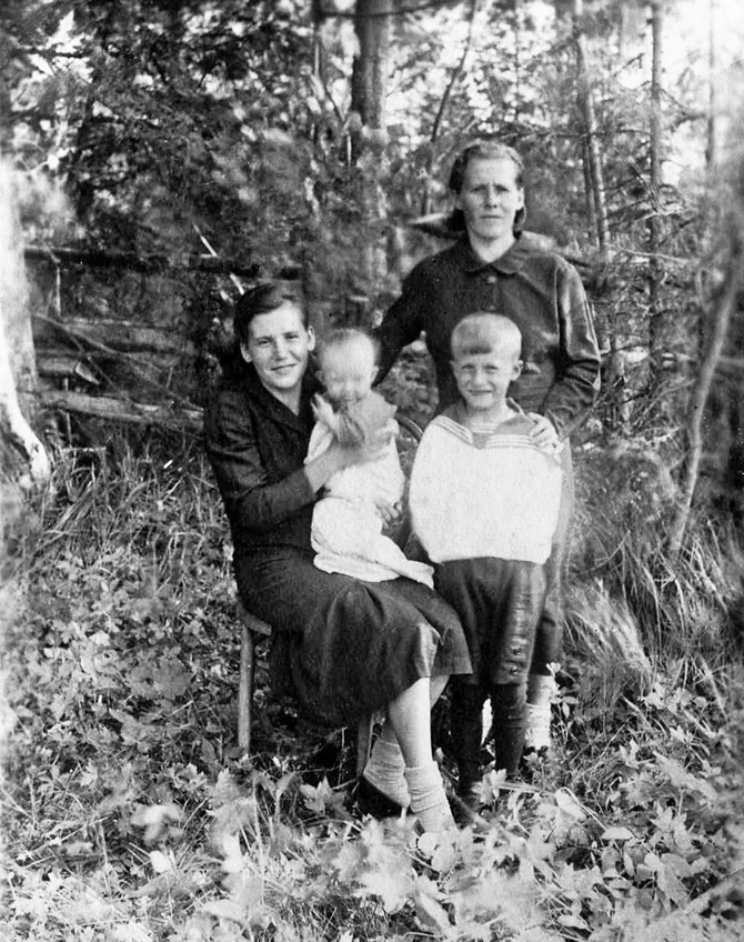 Боброво. Мама с Лией на руках. Стоят Полина (мамина старшая сестра) с сыном Феликсом. 1942 год