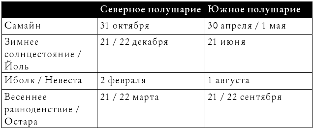 Эта таблица показывает саббаты в кельтском Колесе года: