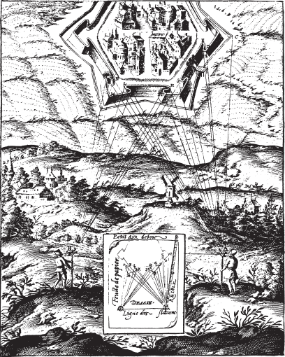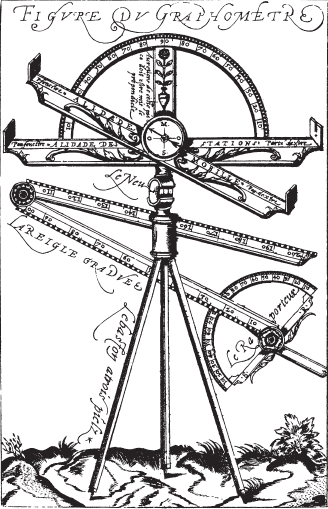 Сцена топографической съемки XVI в. Показано изготовление инструментов и их использование в полевых условиях