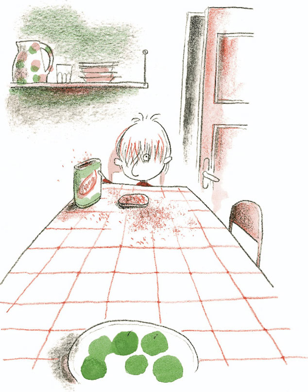Я вышел из-за стола с огромным комком шпината во рту – попытался спрятать шпинат за щекой, но его было немножко видно. Бабушка сказала, что мы должны есть как следует и что не нужно переводить еду: многие дети в мире умирают с голоду, они были бы счастливы съесть шпинат.
