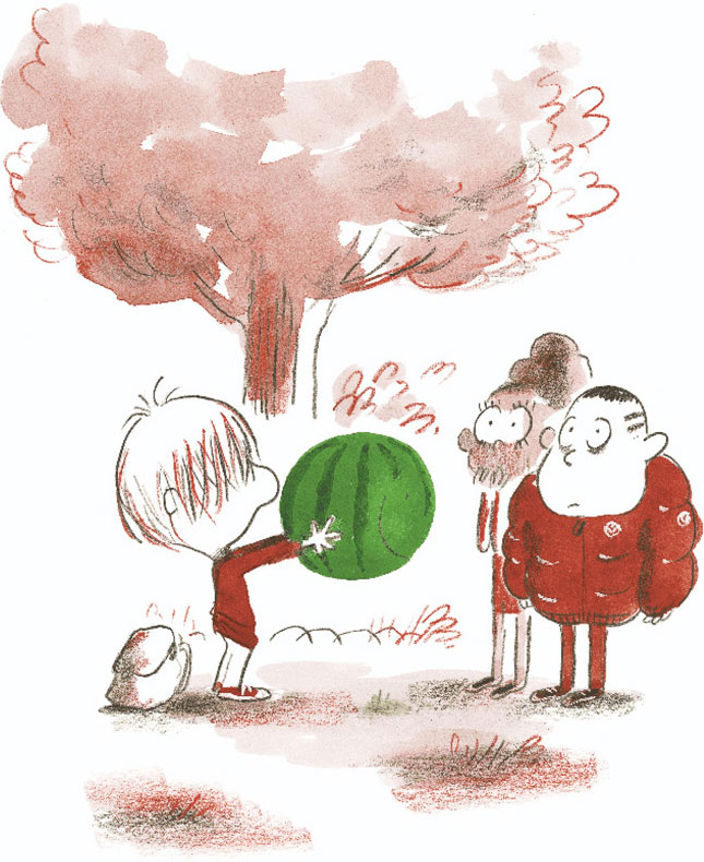Я не хотел обманывать друзей и признался, что нарисовал глаза и рот фломастером. И что мой младший брат действительно арбуз. И именно из-за того, что он арбуз, мои родители хотели заставить меня поверить, что брата нет. Родители стыдятся его, а мне неловко за них. Но я рядом. И я его не подведу.