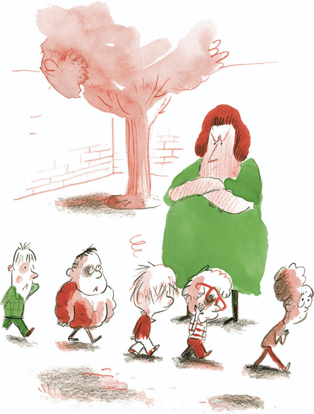 Мадам Бруйяр обычно сидит в углу, читает книжку, так что мы сами разбираемся с пенальти вне игры и ошибками судей. Когда мы ссоримся, она встаёт, разнимает нас и говорит, что на нас нельзя положиться – мы не можем играть спокойно, без драк. Мы возвращаемся в класс, и она в наказание устраивает нам диктант.