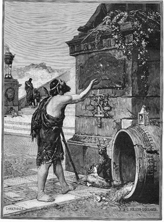 Диоген просит милостыню у скульптуры. Гравюра конца XIX в.