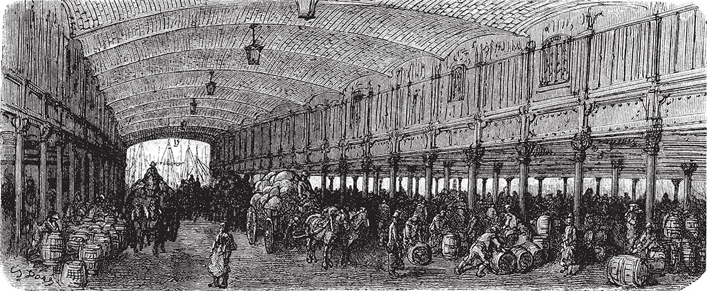 На складах доков помещаются двести восемьдесят тысяч тонн товаров, а в подвалах могут храниться до восьмидесяти семи тысяч бочек вина.