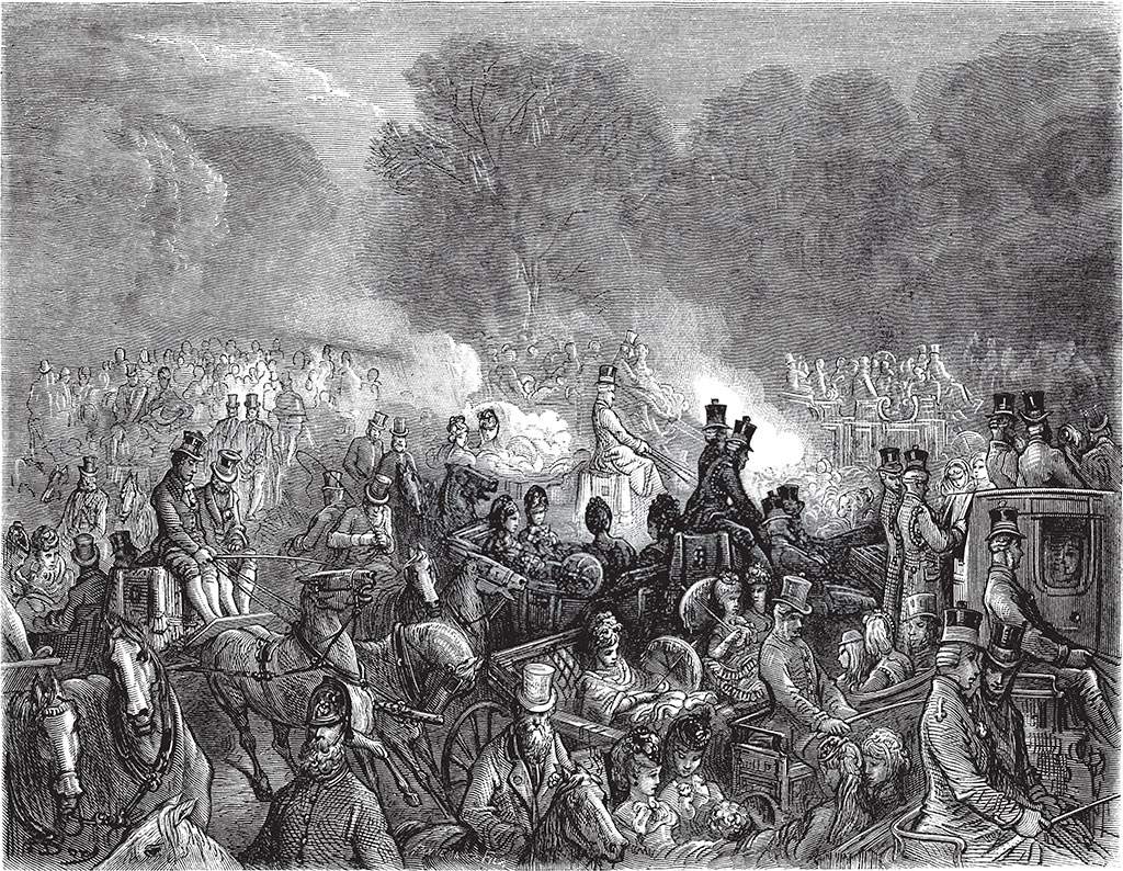 [Закрыть], откуда экипажи выезжают в строго определенное время, чтобы доехать до Риджентс-стрит и остановиться перед модным магазином. Там миледи покупает одну-другую изысканную вещицу, а чуть погодя отправляется в Гайд-парк на прогулку.