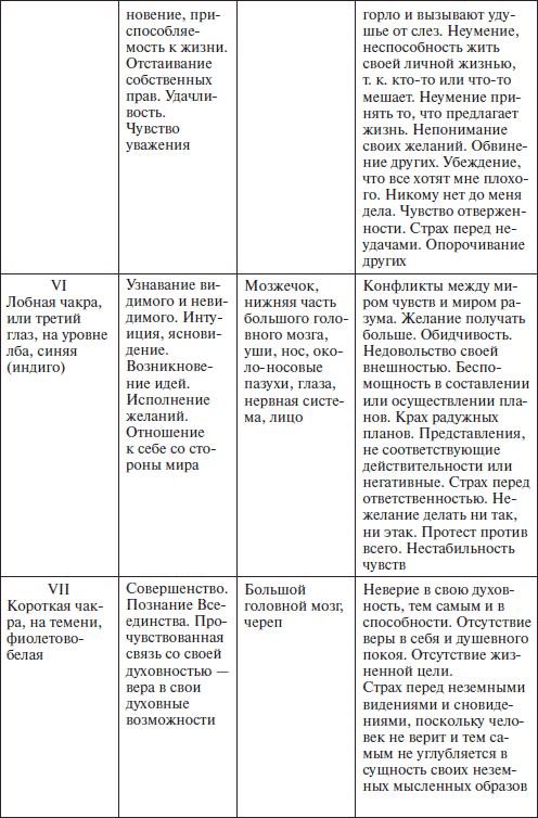 Приведенные в следующих таблицах данные собраны в ходе лечения жителей Эстонии. Проверьте, отвечает ли изложенное на таблицах Вашей болезни. Болезнь возникает тогда, когда чакра скована стрессом и происходит утечка энергии либо блокирован ее приток.
