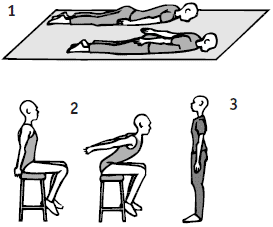 Это можно сделать упражнением на растягивание лежа на полу, сидя или стоя. Лучше всего сидя на жестком стуле. Сядьте на край стула, возьмитесь за его края или положите ладони на верхнюю часть бедер, упираясь запястьями в низ живота. Сосредоточьте свои мысли на позвоночнике. Начинайте поднятие с копчика. Физический подъем подкрепите мысленным. Вообразите кошку, поднимающую хвост. Прогнитесь в пояснице и мысленно представьте себе, что крестец принимает чуть ли не горизонтальное положение. Только так могут легко подняться поясничные, грудные и шейные позвонки, поскольку исчезнет их выгнутое назад кривое положение, напоминающее укладку черепицы, и вместе с ним сопутствующее ему огромное мышечное напряжение в спине.