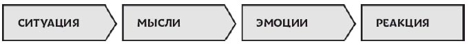 Вот как это организовано. Мы попадаем в определенную ситуацию. Эта ситуация запускает целый каскад мыслей: мы оцениваем саму ситуацию, прикидываем мотивы поведения других людей, строим прогнозы, делаем выводы. Часто все это происходит автоматически, мгновенно и бессознательно, то есть мы даже не успеваем заметить ход своих мыслей. Но зато эти мысли успевают вызывать у нас чувственный отклик, который, в свою очередь, может приводить к самым разным реакциям.