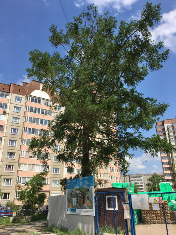 Май 2020 года. Екатеринбург. Пионерский посёлок. Уцелевшая лиственница ул. Милицейской. Личный архив