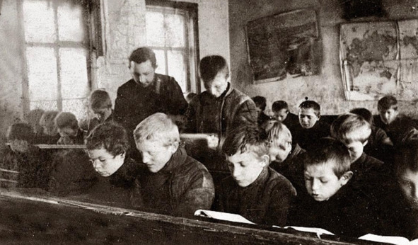 1920-е годы. Иван Нилович Мезенцев на уроке в школе.