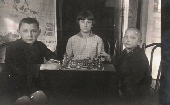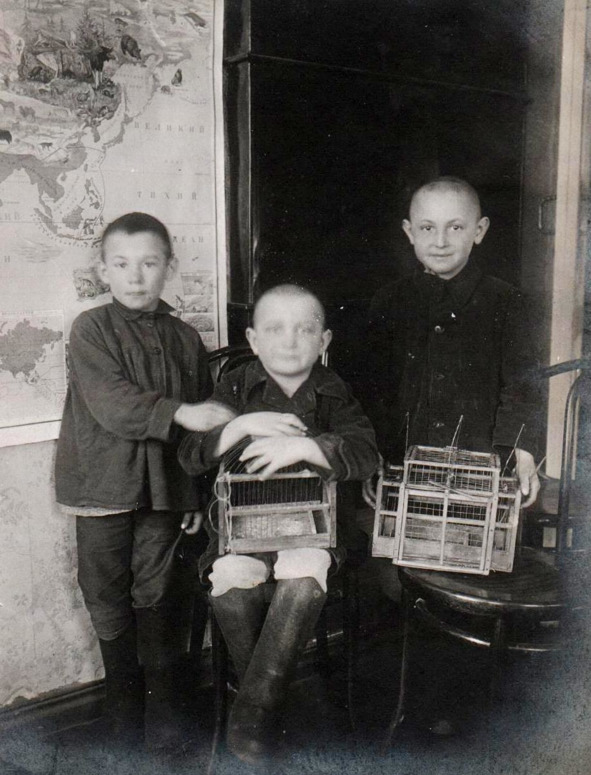 1927 год. Свердловск, ул. А. Толстого, 8. Забава детей – ловля птиц. Справа: братья Алексей и Всеволод Мезенцевы. Семейный архив