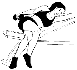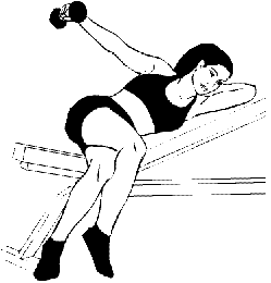 Лежа левым боком на любой наклонной поверхности (угол скамьи 45°), возьмите в правую руку гантель, левую руку согните в локте и положите под голову. Упритесь носками в пол, положив ногу на ногу. Правую руку вытяните так, чтобы она была параллельна корпусу, гантель касалась бедра, ладонь была направлена вниз. Из этого положения поднимите вверх руку с гантелью, выдержите паузу и вернитесь в исходное положение. Не поднимая плеча, перед каждым повтором соединяйте и опускайте лопатки. Поменяйте положение тела и рук и выполните упражнение в другую сторону.