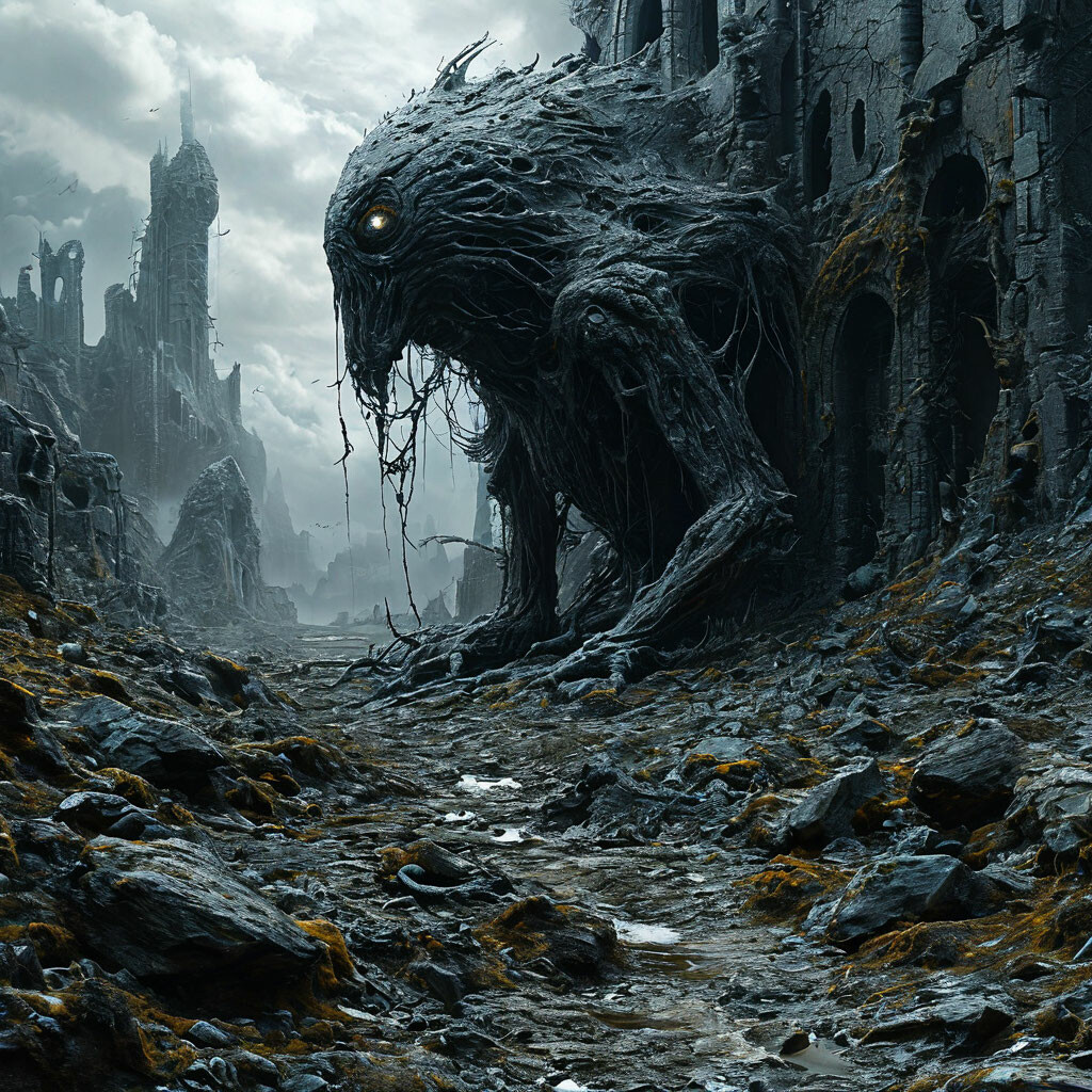 Над пустырем проносится пронзительный и громкий, многоголосый собачий вой. Слышен хруст веток. С другой стороны пустыря раздается хрип. Звук гулкий, громкий, и не человеческий.