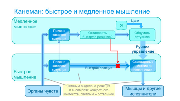 Если представить картину работы мозга, выявленную Канеманом, то мы получим такую схему.