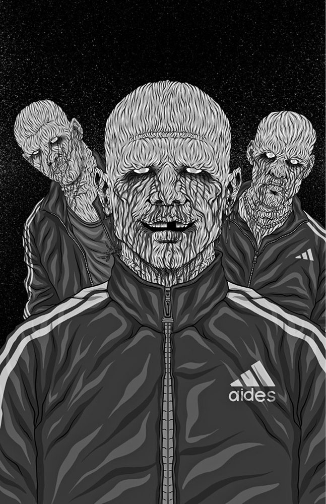 Тут случилось странное. Кожа на месте пореза разошлась в стороны, будто раскрываясь, но вместо крови оттуда хлынула мутная серая вода с примесью красного. Она выходила толчками, залила мужчине лицо, грудь.