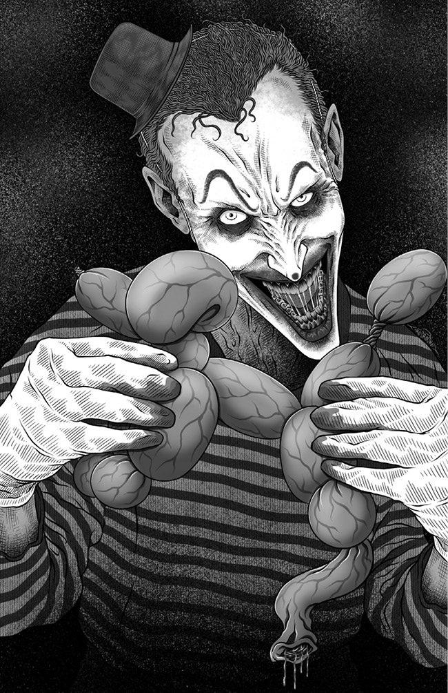 Надя повернулась и отпрянула, врезавшись в двери. Мим возвышался над ней, ухмыляясь. От него несло забившейся мойкой и псиной. Он вставил в глазницы кроны, монетки радостно подмигивали Наде, ловя свет ламп. Рука в перчатке метнулась к ошарашенной девушке и тут же отдернулась. Посмотрев вниз, Надя увидела, что мим тянет из-под ее футболки алую ткань.
